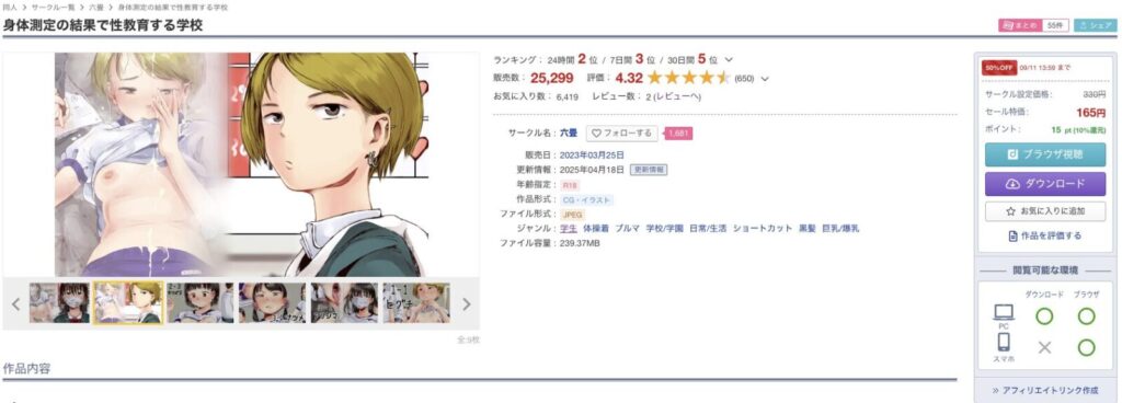 六畳先生の身体測定の結果で性教育する学校を読むには、DLsiteがお安くておすすめ!